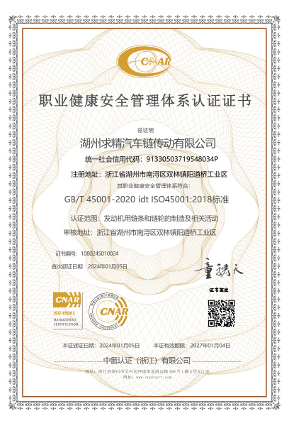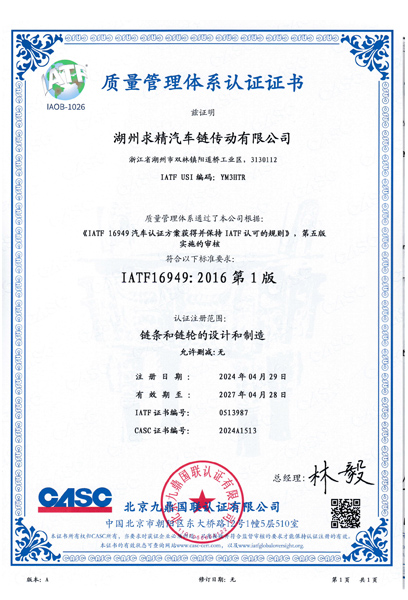 湖州求精汽車鏈傳動有限公司成立于1999年,注冊資金3000萬元,是汽車發動機用鏈條與正時系統研發及生產基地,公司座落于長江三角州經濟區中心的湖州市,公司現有員工200人,技術人員50人,其中研發人員25人。